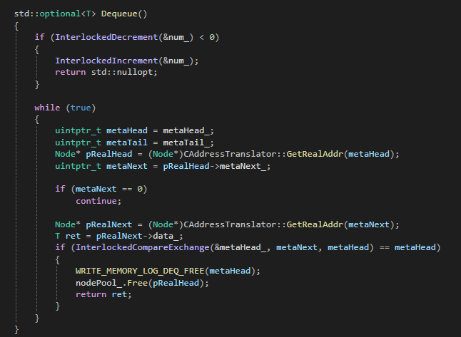 1. localMetaTail_ : Enqeueue 혹은 Dequeue에서 큐의 멤버변수 metaTail_값을 저장하는 지역변수