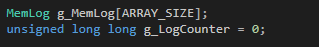 MemLogRead : 로그를 분석하는 프로젝트에서만 사용하는 함수임. ARRAY_SIZE 크기의 배열과 Counter, 마지막 인덱스를 받을 변수의 주소를 넣으면 담아준다.