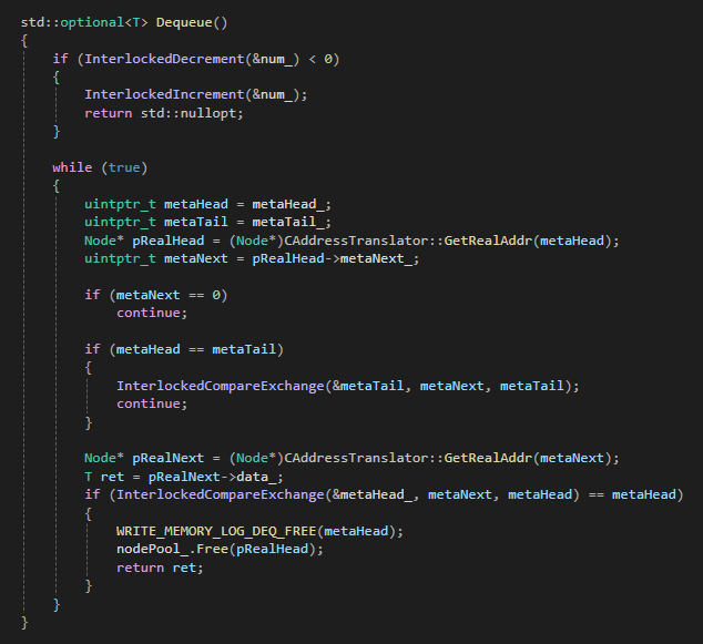 마찬가지로 DEQ에서도 head의 next가 잇는데 metaHead == metaTail 이라면 tail을 옮길수 잇는상황이라면 2번 CAS를 시도해서 tail을 옮기고 다시 루프 맨앞에서 head를 얻어온다